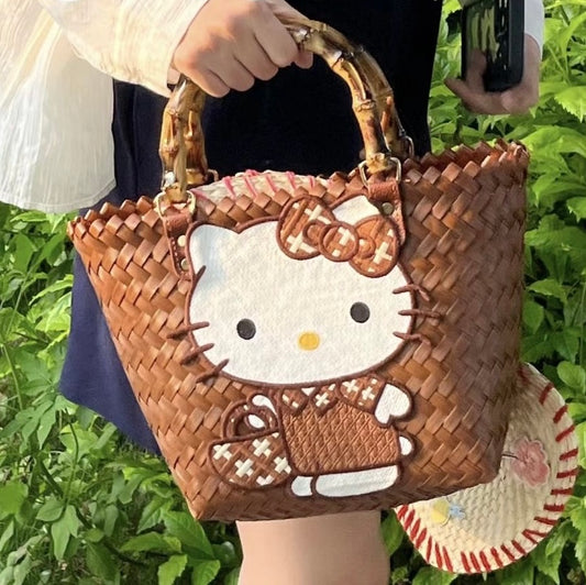 Hello Kitty Holiday Beach Tote Bag, Large Capacity Pink Canvas Handbag