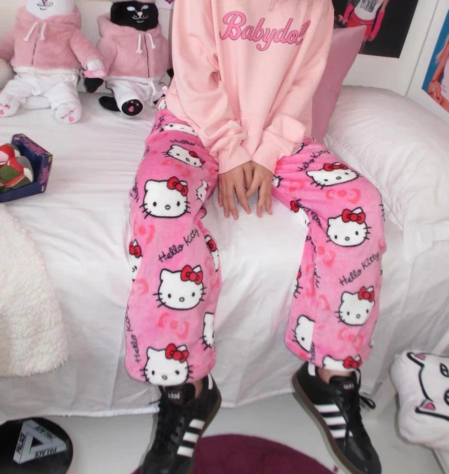 HelloKitty Halloween Fluffy Fleece Warm Pajamas Pants
