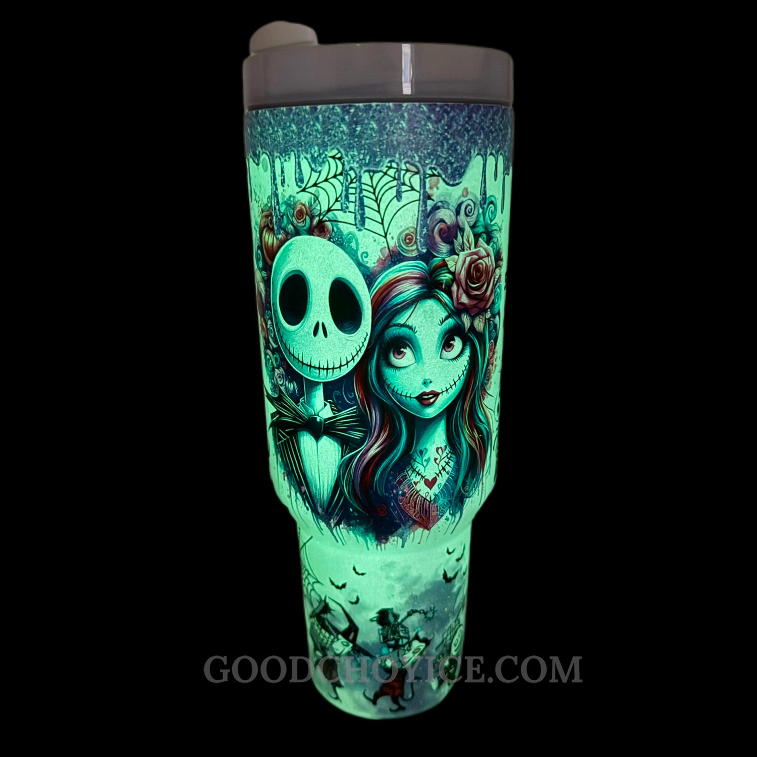 Sally & Jack Skellington Midnight Magic Glow-in-the-Dark 40 Oz Tumbler 🖤💀✨🎃 Limited Edition