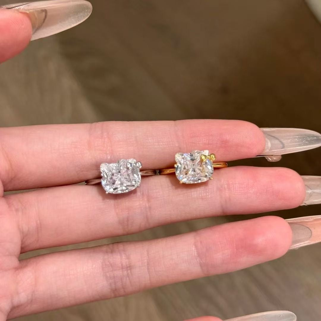 Hellokitty 925 Sterling Silver White Gold Plated Cubic Zirconia Promise Ring