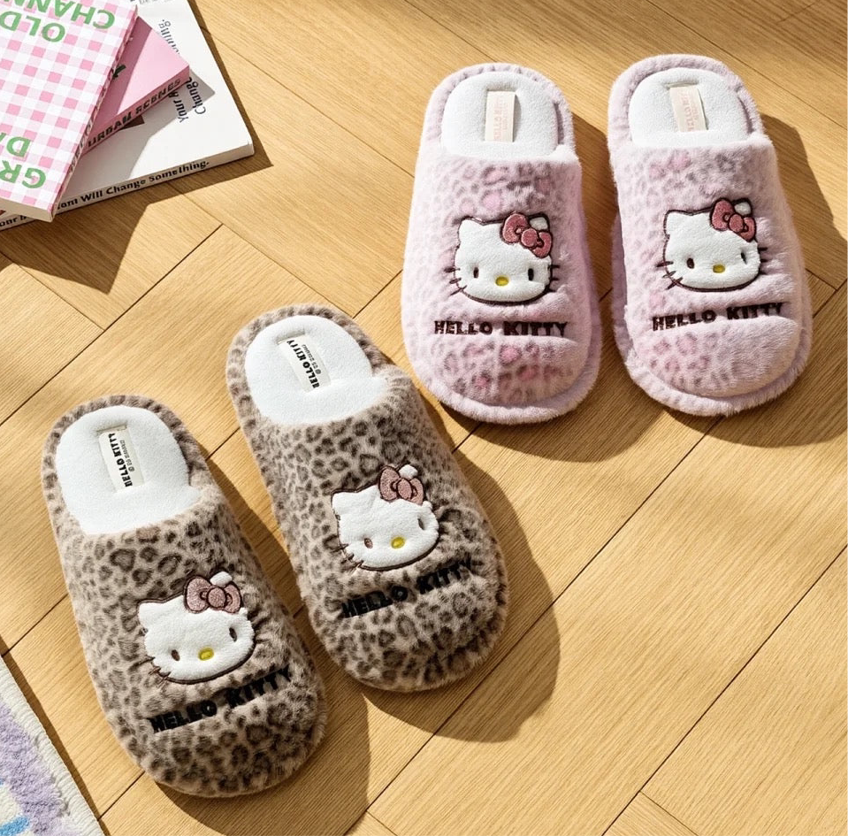 Meet your new favorite slippers! The Hello Kitty Leopard Fluffy Slipper is the perfect blend of fierce and fluffy. Featuring the iconic Hello Kitty charm set against a trendy leopard print, these slippers are a statement of cute and wild style. Made with ultra-soft plush material, they offer cloud-like comfort for your cozy days at home. It’s the purrfect pair for any Hello Kitty fan who loves a touch of fun and fashion!
