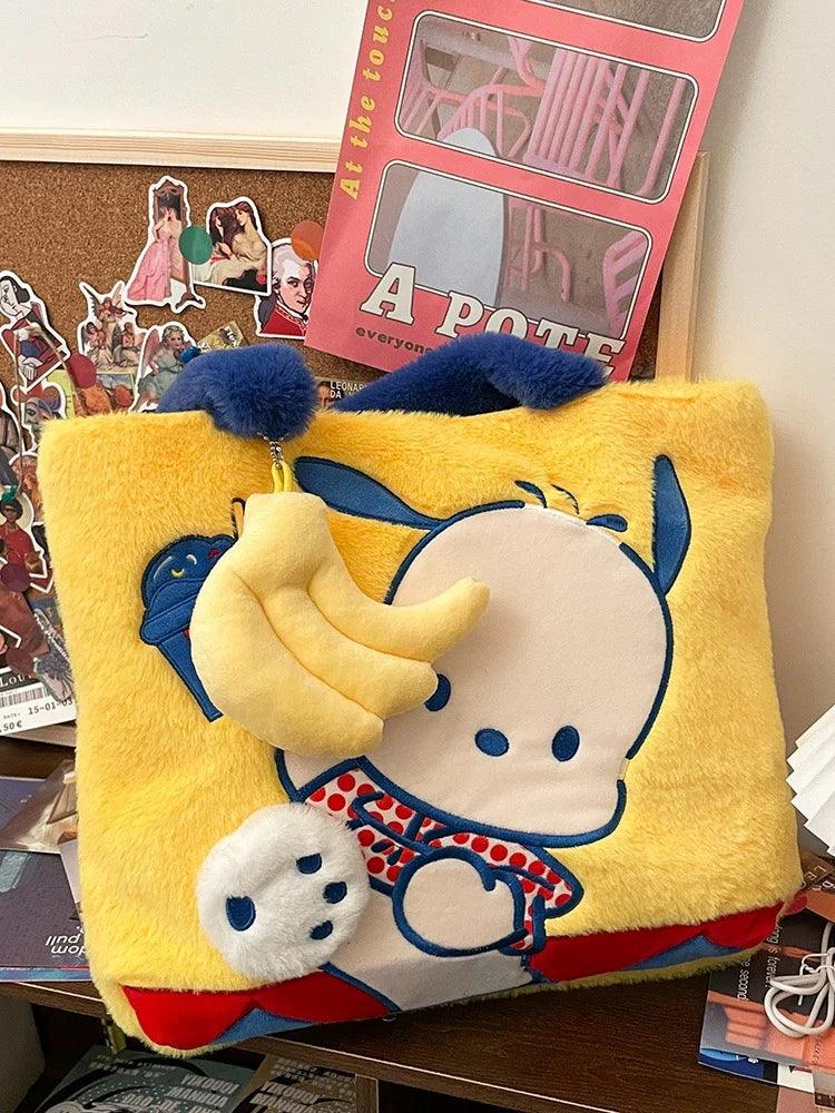Introducing the Pochacco X DQ Fluffy Handbag, a delightful collaboration merging Pochacco's charm with DQ's flair. Limited edition and highly sought after, this trendy accessory boasts a soft texture and spacious interior. Stand out with this whimsical yet chic handbag today!